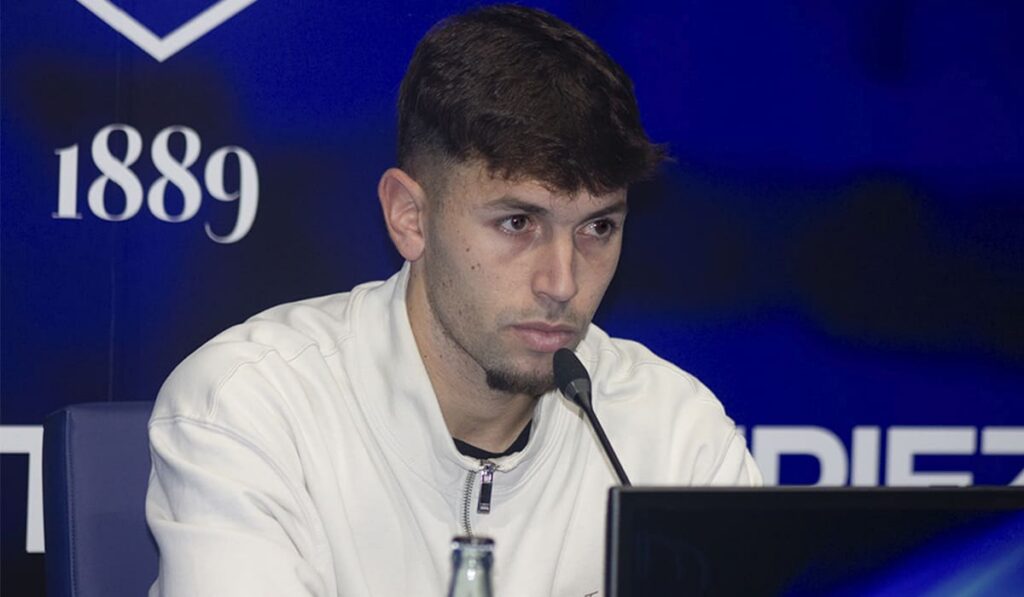 Álex Bernal fue el otro protagonista en la rueda de prensa previa al Lorca Deportiva–Recreativo de Huelva. El centrocampista albiazul, en uno de los mejores momentos de la temporada, destacó su estado de forma y el trabajo diario impulsado por el nuevo cuerpo técnico.