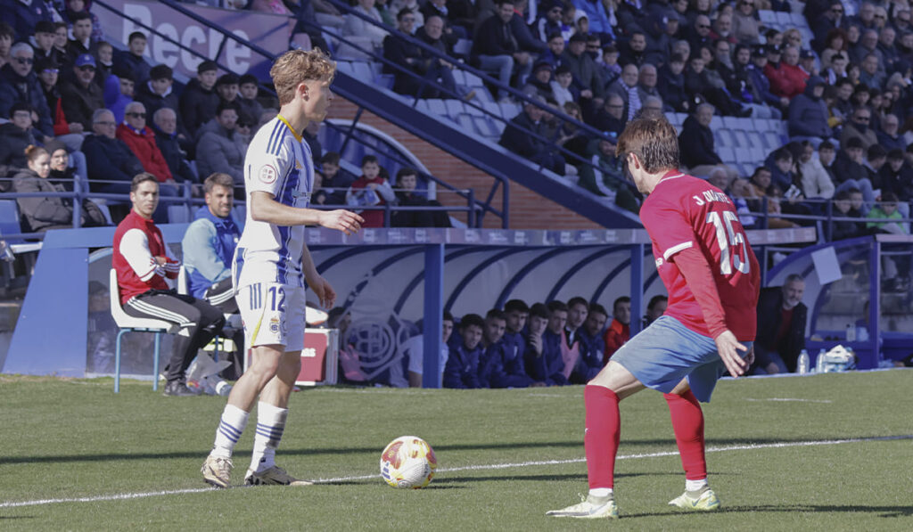 El encuentro comenzó con intensidad y con un Estepona valiente que avisó primero: Samu Expósito probó fortuna desde lejos y, poco después, un resbalón defensivo estuvo cerca de costar caro a los albiazules, aunque Alberto Vela taponó el disparo de Javi Duarte. El Recre fue asentándose con el paso de los minutos y empezó a encontrar espacios.